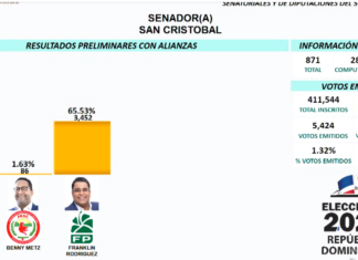 SAN CRISTOBAL.-EN SAN CRISTOBAL: Franklin Rodríguez: 65.63 y Tommy Galán: 32.84 en primer boletín. Franklin Rodríguez, el candidato a senador del Partido Revolucionario Moderno (PRM), Fuerza del Pueblo y...